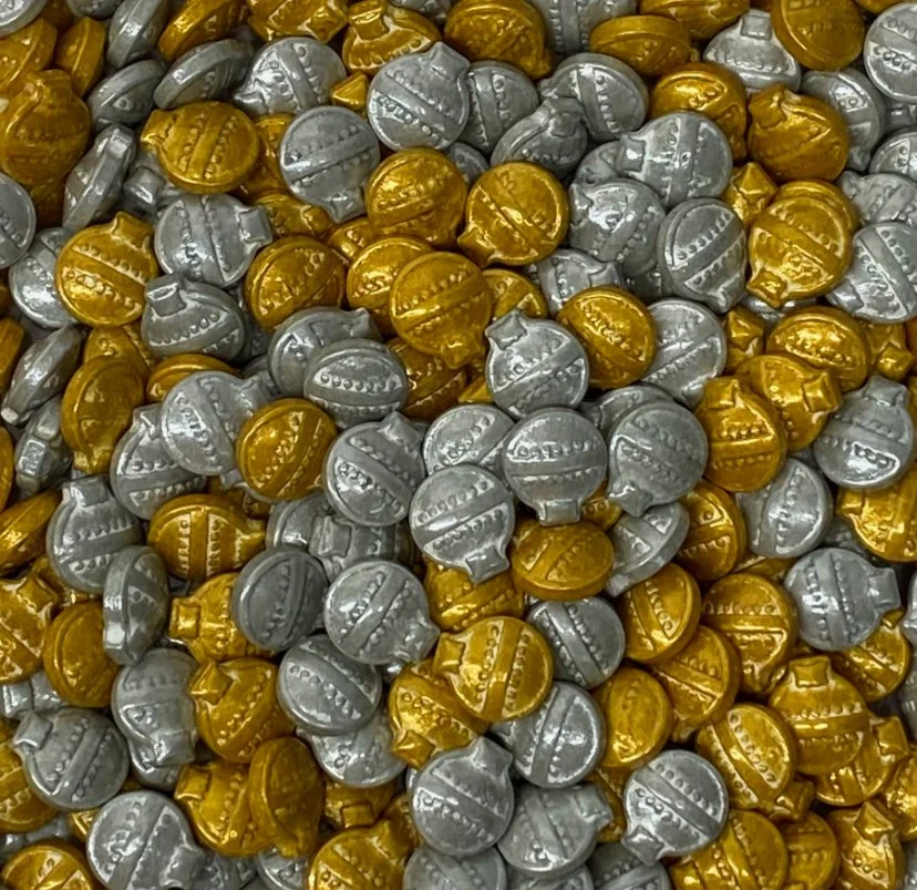 Shop › Gold & Silver Ornaments Sprinkles 2oz. Image 1 of 1 Gold & Silver Ornaments Sprinkles 2oz. $1.99 shaped sprinklesthicker style with shiny coating2 oz. bag Quantity: Add To Cart Added! shaped sprinklesthicker style with shiny coating2 oz. bag Reviews Reviewer Name Review Date Star Rating Description Posted on Etsy Product Show More
